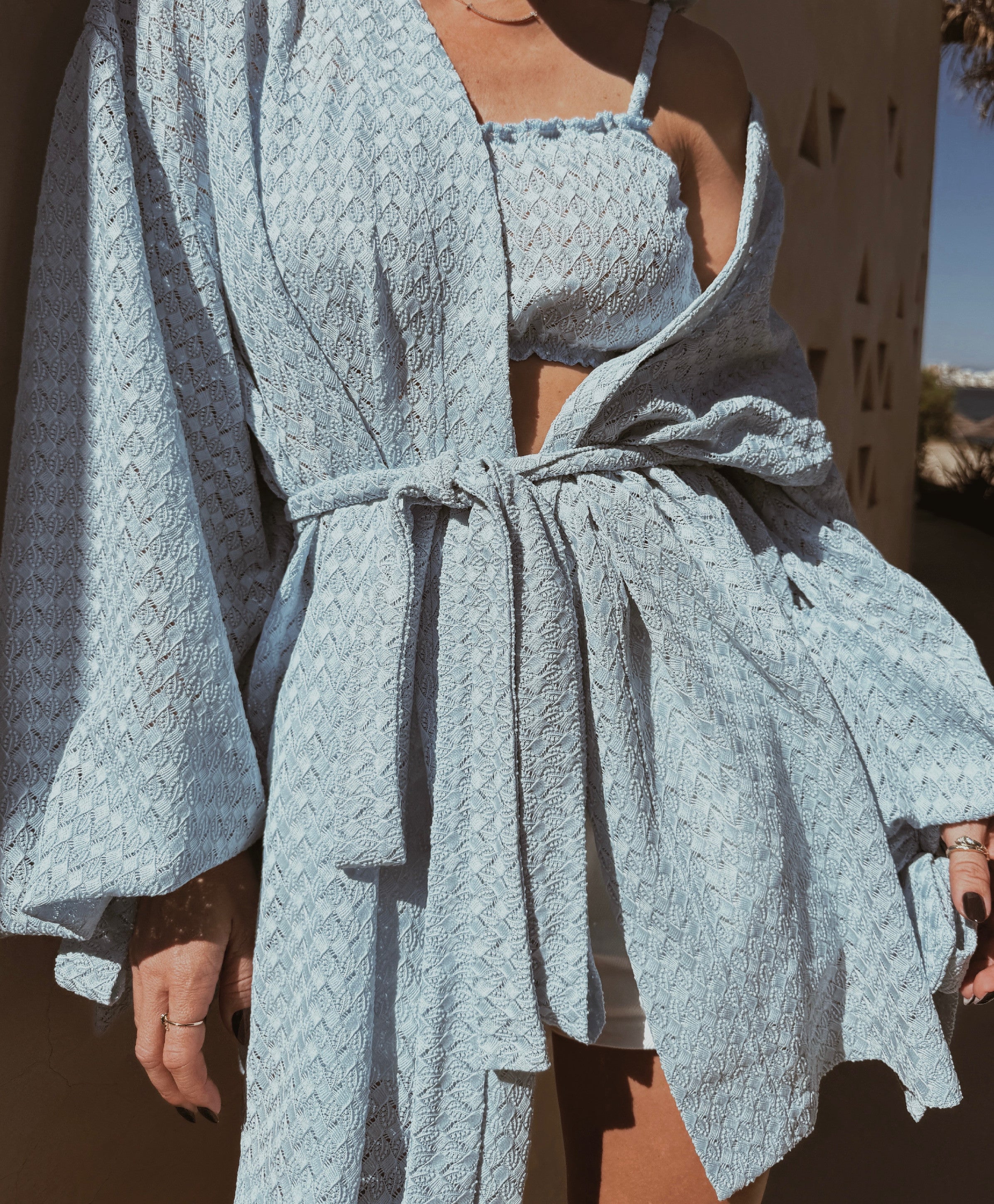 Crocheted crochet kimono blue