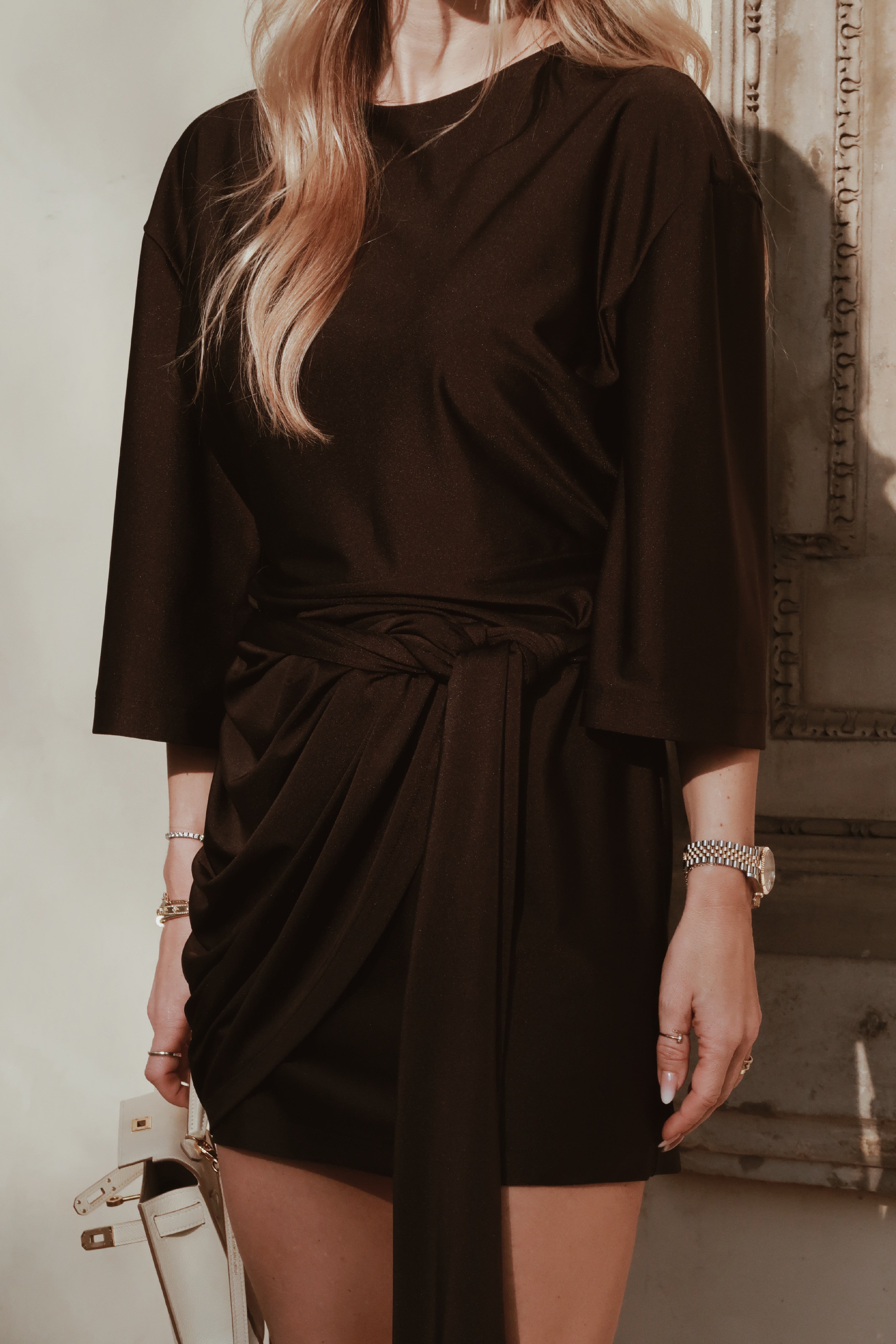 Depending on the tying method, you can easily adjust the length of the dress, whether you want it shorter or longer.