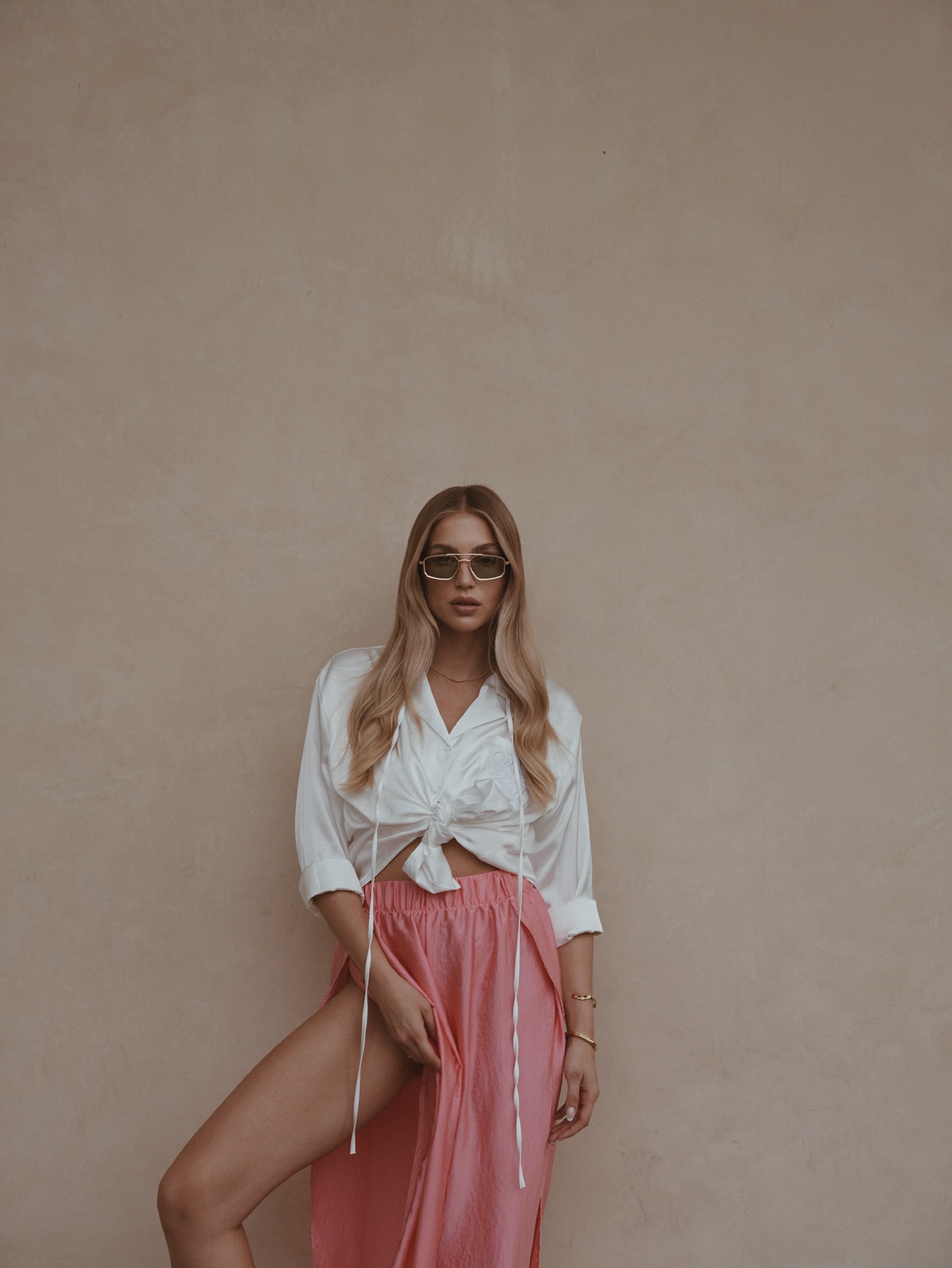 New pink satin kalhoty s rozparky