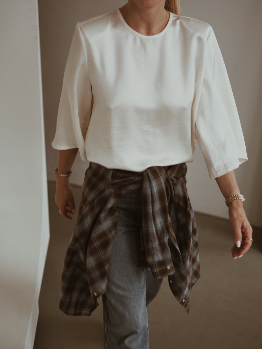 Elegantní saténový top s vycpanými rameny pro výraznější siluetu